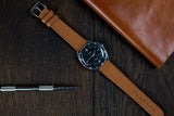 Our grained calfskin leather straps are made by hand in a small leather atelier in Northern Italy. The best possible leather is selected and carefully made into a perfect companion for your precious watch. It is all about details in a well-made strap; supple leather, fine stitching, well-proportioned keepers, a slight taper and smooth edges and tip. You will not be disappointed with a strap like this, we’re sure of it.